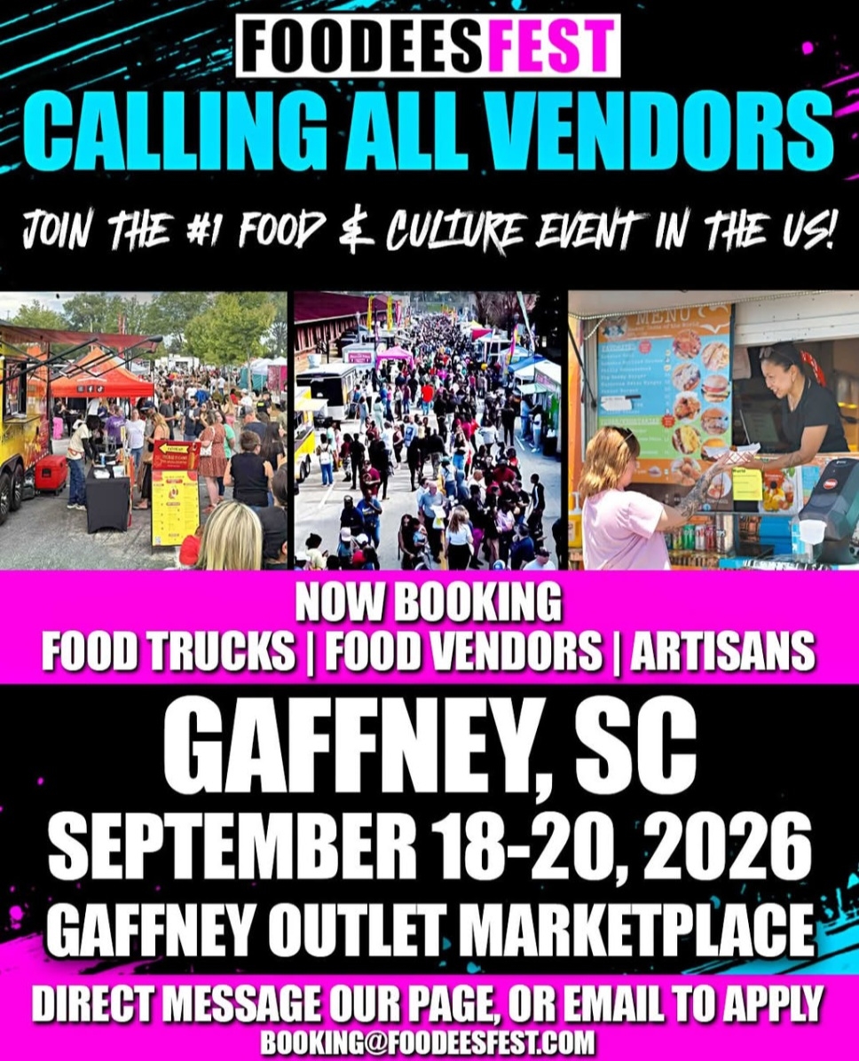We are seeking vendors for our Gaffney SC, Foodees Food and Culture Festival! Are you a talented food vendor looking to showcase your unique creations? We'd love to have you!